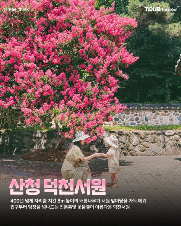 경남 산청에 위치한 덕천서원은 매년 여름 짙은 분홍빛의 배롱나무가 마당을 가득 채워 고즈넉한 풍경이 펼쳐지는 배롱나무 명소입니다.