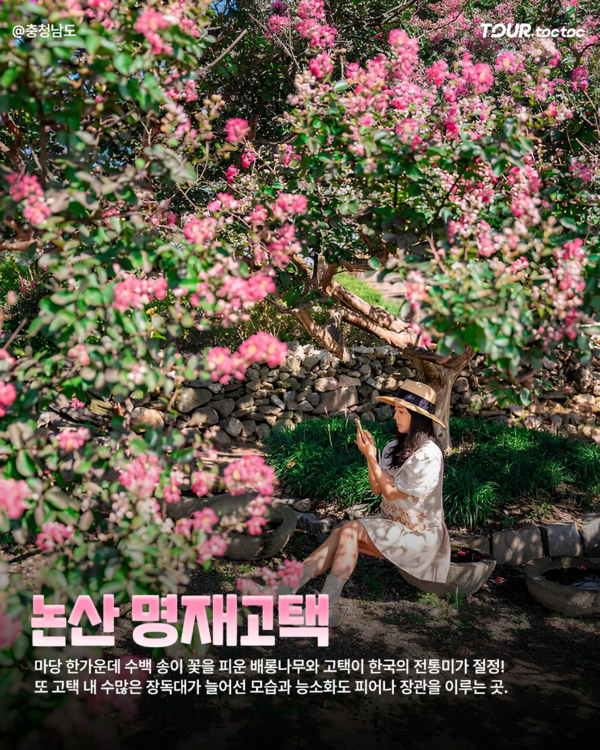 커다란 배롱나무와 고택이 어우러진 풍경은 전형적인 한국 여름의 정취를 보여주며 장독대가 늘어선 풍경 역시 또 하나의 장관입니다. 다만 명재고택은 후손들이 실제 거주 중인 공간이니 관람 구역과 소음에 주의가 필요합니다.