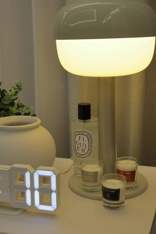 이 조명은 이케아에서 저렴한 가격으로 데리고 왔는데 저희 집 커튼과도 잘 어울리는 색감이라 만족스러운 아이에요! 우리집 거실 구석을 밝혀주고 있는 기특한 친구랍니다. :) 또한 향이 좋은 캔들과 딥디크 룸 스프레이를 선반장 위에 두어 식사 후 틈틈이 뿌려주고 있어요.