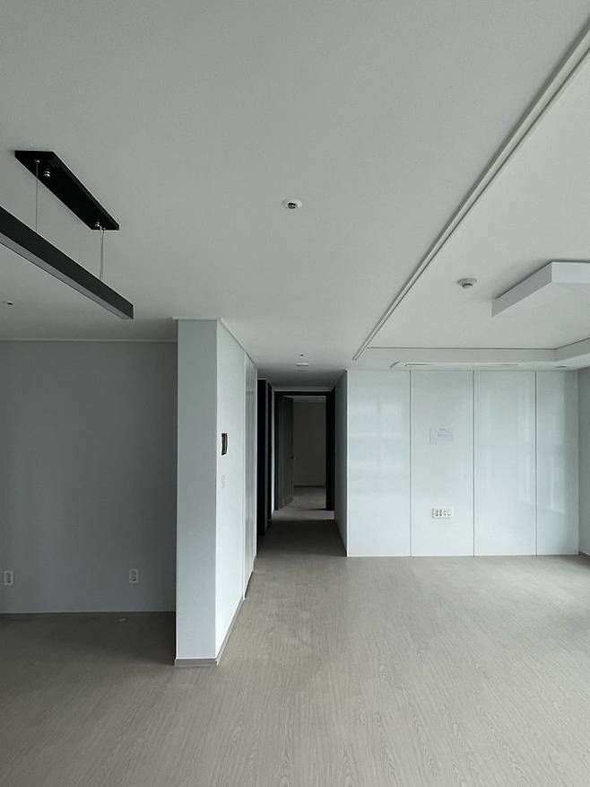 사진과 같이 시공 전에는 밝은 낮에 해가 잘 들어오는 집인데도 복도가 굉장히 어두웠어요. 거실 우물조명을 설치하는 김에 복도에도 조명을 설치 해야겠다고 결정했습니다.