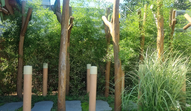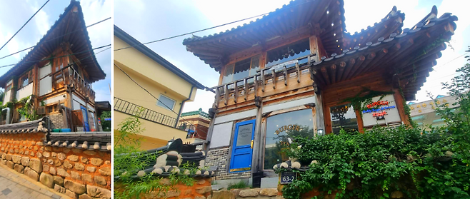 입구부터 푸른 녹음이 가득한 화홍사랑채는 곳곳이 사진 명소다. 초목 사이로 우뚝 서 있는 솟대가 무엇보다 인상적이다. 한 편에 걸려있는 전통 옷감이 바람에 나부끼는 모습 역시 한옥과 어우러져 고즈넉한 정취를 더한다.