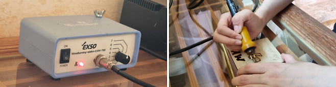 가게에 방문해 ‘우드 버닝 체험을 하고 싶다’고 말하면 매끈한 5000원짜리 나무판을 준다. 먼저 연필로 나무판 위에 밑그림을 그려야 한다. 달궈진 인두 펜으로 밑그림 선을 따라 판을 지지며 원하는 깊이만큼 나무를 태워 그림을 완성한다.