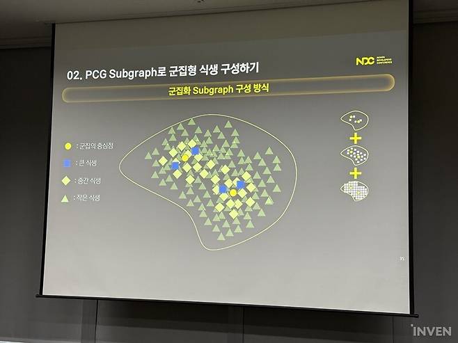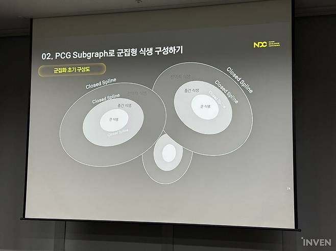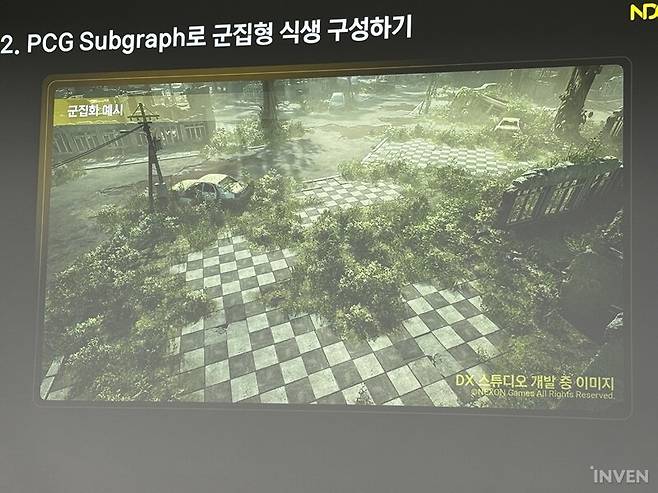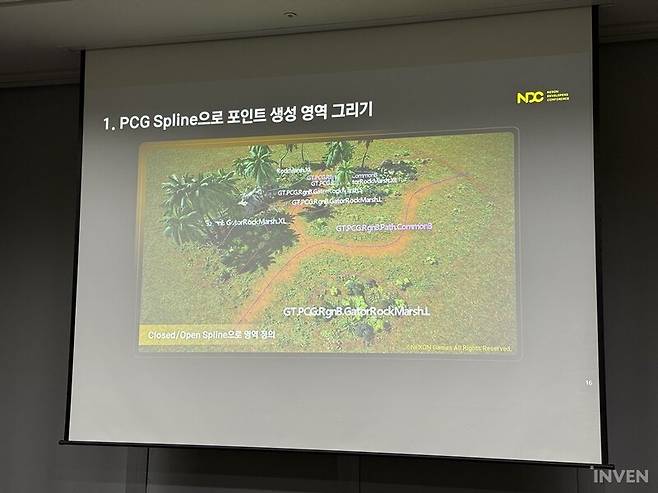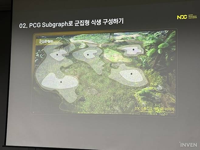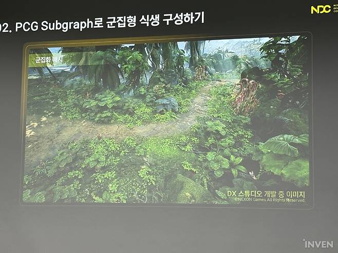 '듀랑고'를 정의하는 요소 중 하나로는 매력적인 세계관을 빼놓을 수 없다. 타임슬립을 통해 공룡이 공존하는 기묘한 세계. 이러한 특징은 프로젝트DX에서도 여전한 모습이다. 매력적인 세계관과 배경은 그 자체로 플레이어들의 눈길을 휘어잡곤 한다. 과연 프로젝트DX는 '듀랑고'가 추구했던 야생의 땅을 어떤 식으로 만들고 있을까. 이번 NDC 2025에서는 넥슨게임즈 DX스튜디오의 김경환 TA가 연사로 나서서 언리얼 엔진5의 PCG를 활용해 프로젝트DX의 실감 나는 식생 구축 방법을 공유했다.