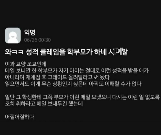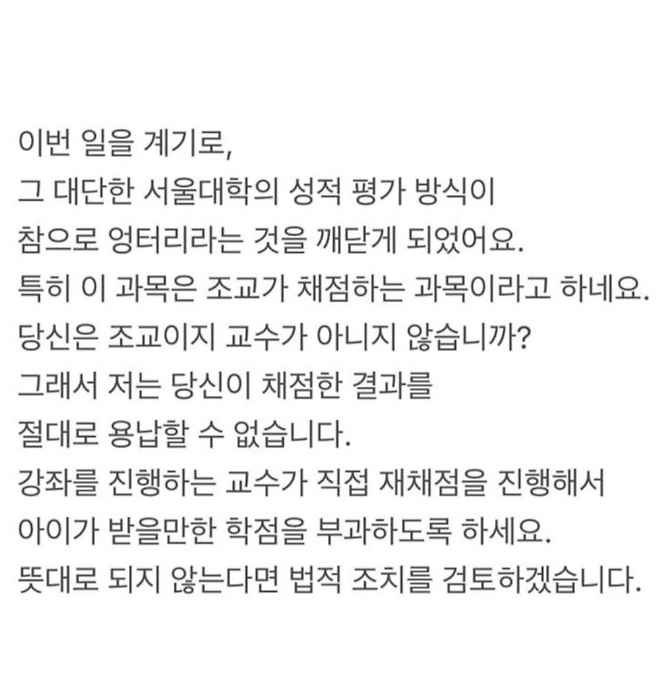 현재 서울대 에타에 난리난 학부모 성적 클레임..