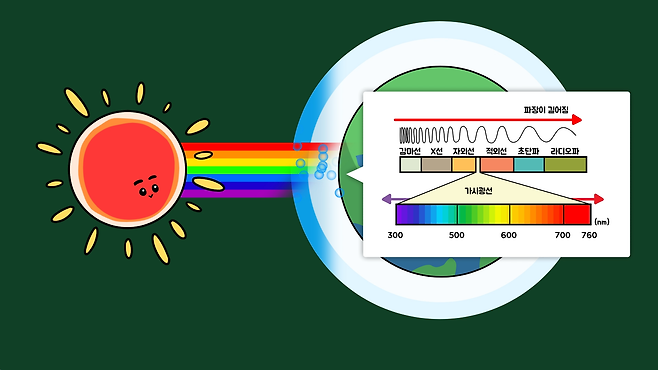 결론부터 이야기하면 빛의 작용 때문입니다. 태양광이 공기 중 크기가 아주 작은 입자인 미립자와 부딪쳐 흩어지면 파장이 짧은 파란빛이 더 강하게 흩어집니다.