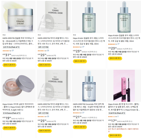 10일 피피비스튜디오스에 따르면 하파크리스틴은 최근 미국에서 기초 화장품 4종을 처음으로 공식 출시했다. 제품은 ‘하이드로젤 페이스 마스크’, ‘주름 개선 크림’, ‘포어 세럼’, ‘세라마이드 장벽 세럼’ 등이다. 그동안 마스카라, 립밤, 블러셔 등 렌즈 연출을 강조하는 색조 제품 위주였던 라인업을 미국에서 기초 제품으로 확대한 것이다. 현재 로스앤젤레스·마이애미·뉴욕 플래그십 매장과 온라인 아마존에서 판매되고 있다.