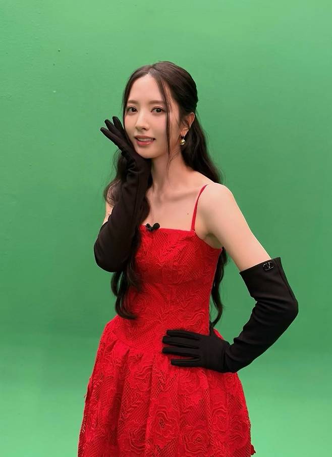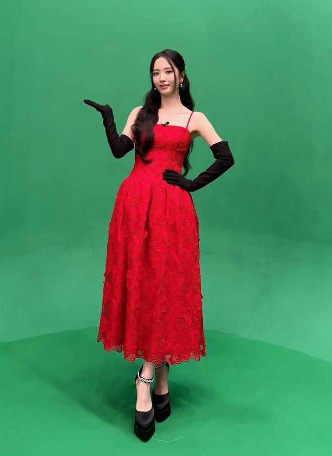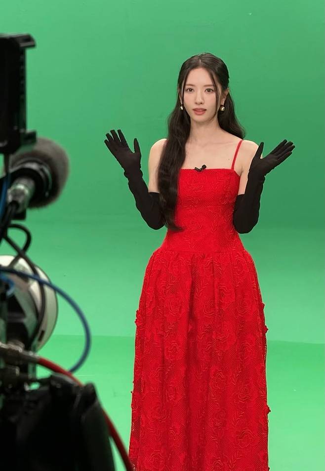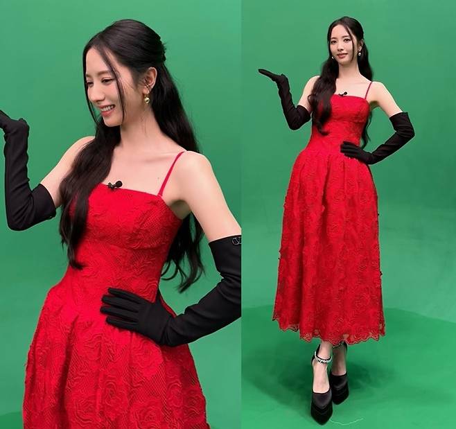 공개한 사진에서 김지연은 장미가 수놓아진 레드 컬러의 오프숄더 드레스룩으로 상큼하면서도 러블리한 매력을 드러냈다.
