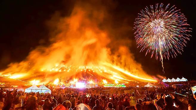 이번 축제에서는 전통적인 달집태우기와 더불어 디지털 불놓기라는 미디어아트 기술을 새롭게 도입하여 오름 사면을 화려한 빛으로 물들입니다.