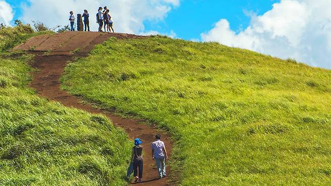 정상까지 오르는 길은 약 30분 내외면 충분하지만 그 짧은 시간 동안 마주하는 풍경의 밀도는 매우 높습니다. 초입에서 시작되는 완만한 경사는 이내 가파른 구간으로 이어지며 등반의 묘미를 더해줍니다.
