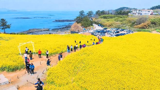 제주도와 더불어 전국 2대 바닷가 유채꽃지로 손꼽히는 명성답게 압도적인 규모와 희소한 색채의 조화는 보는 이의 시선을 단숨에 사로잡으며 잊지 못할 시각적 경험을 제공합니다.