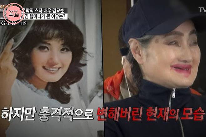 짙은 눈썹에 새빨간 입술, 후줄근한 옷차림의 중년 여성은 예전의 김교순을 찾기 힘들었죠.