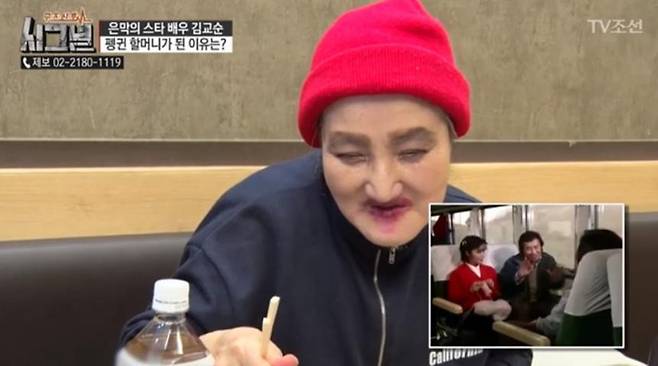 빛나던 화면 속 배우에서, 펭귄 할머니가 된 김교순.