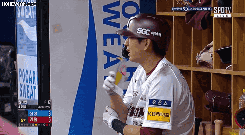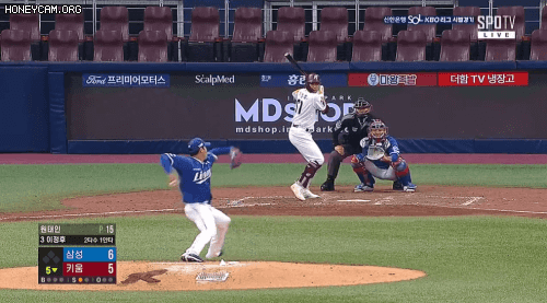 타격 후 팔꿈치에 이상을 느낀 이정후.gif