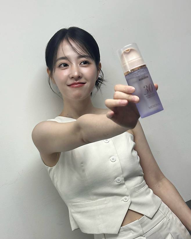 흰 캔버스 같은 원숄더 베스트는 어깨선과 쇄골을 깨끗하게 드러내면서 얼굴 크기를 더 줄여주는 효과를 줘요.