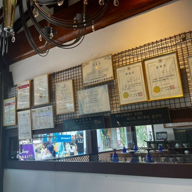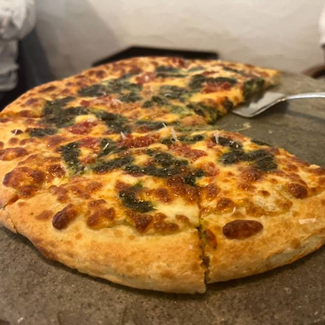 들어서자마자 벽에 붙어 있는 무수한 상장과 메달에서 범상치 않은 분위기를 풍긴다. 무려 이곳은 국가 인증 ‘대한민국 명장’인 조우현 셰프가 운영하는 맛집이다. 특허 받은 메뉴가 세 가지 있는데 그 중에서도 ‘조 셰프의 특허피자’를 주목하자. 김치소스를 베이스로 부추, 검정깨, 꽃이 올라간 특이한 조합의 피자다. 위에 식용 꽃이 알록달록하게 올라가 있어 제일 먼저 드는 생각은 ‘예쁘다’라는 것. 아까워서 어떻게 먹나 싶다가도 한 입 베어 물면 쫄깃한 도우에 먼저 반하고, 루꼴라와 꽃의 은은한 향에 코까지 즐겁다. 여기에 아마트리치아나나 특허가 있는 김치 누룽지 파스타 같은 살짝 매콤한 류의 파스타가 잘 어울리니 함께 주문해 요리 국가대표 셰프의 손맛을 한껏 느껴보는 걸 추천한다.