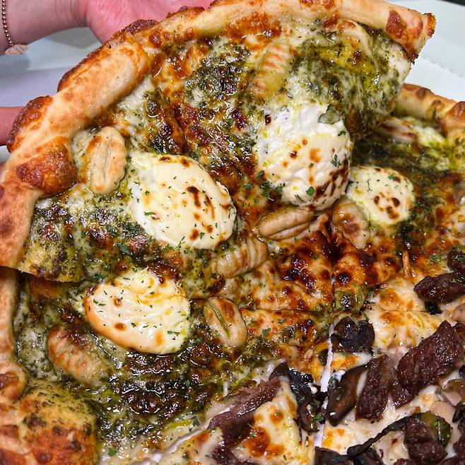 여러 군데 체인점을 두고 있는 노모어피자 역시 특허 받은 도우를 사용한다. 특허의 비결은 바로 소금 우유. 소금 우유로 만든 피자는 얼렸다가 녹여도 처음과 비슷한 맛을 느낄 수 있다고. 게다가 이탈리아 명문 요리 학교 출신 이유섭 셰프의 레시피로 토핑을 구성해 메뉴 하나 하나 비범하다. 방문이 처음이라면 시그너처인 ‘바질 마스카포네 뇨끼 피자’와 ‘옥수수 새우 피자’를 반반 피자로 시켜보자. 쫀득한 뇨끼와 바질이 어우러진 피자와 달콤하면서도 매콤한 옥수수 새우 피자의 조합이 절묘하다.