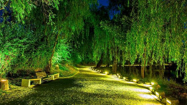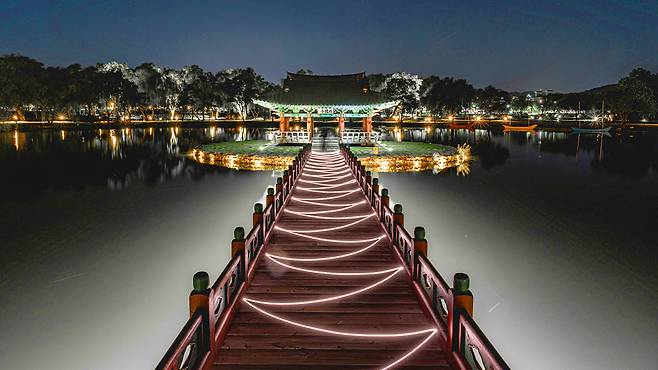 연못 한가운데 자리한 포룡정은 이 공간의 상징과도 같다. 정자와 수면이 만들어내는 균형감은 사진 촬영지로도 주목받는다. 특히 해 질 무렵 조명이 더해지면 분위기는 한층 깊어진다.
