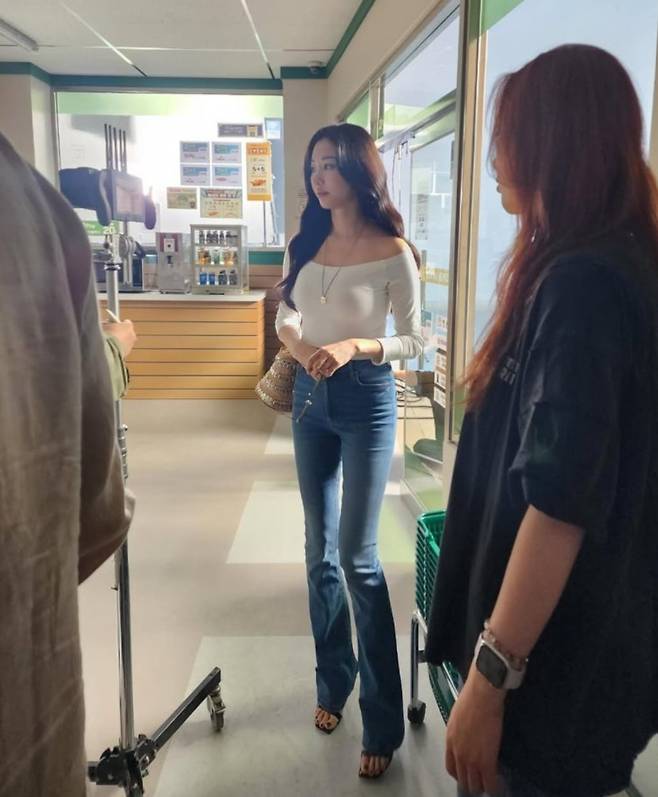 사진 속 주인공은 김사랑이었다. 최근 공개된 촬영 현장 비하인드 컷에서 그는 몸에 밀착된 화이트 톱과 슬림한 데님 팬츠 차림으로 등장했다. 과한 장식 없이도 실루엣이 또렷하게 살아 있었고, 전체적인 인상은 놀라울 만큼 젊었다.