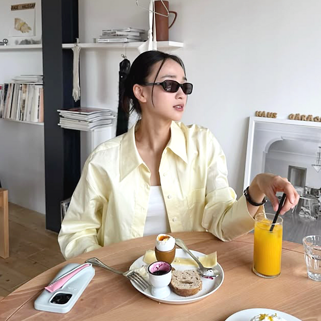 하지만 카페에 앉아 오렌지 주스를 마시는 모습은, 여전히 소녀 같아 눈길을 사로잡습니다. 실제로 그녀는 SNS를 통해 육아와 일상을 꾸준히 공유하고 있는데요.