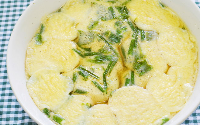 단백한 계란에 감칠맛이 더해지면 따로 간을 세게 하지 않아도 충분히 맛있게 즐길 수 있습니다. 육수는 따뜻한 상태에서 섞는 것이 포인트입니다.