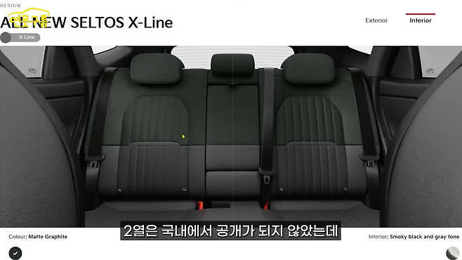 인테리어 컬러는 '그레이-블랙', '브라운-그레이', 그리고 X-라인 전용 '블랙-그린'이 제공된다. 특히 블랙-그린 컬러는 시트와 엠비언트 라이트, 필러 쪽에 감각적인 그린 색상이 포인트로 적용되어 소형차답지 않은 고급감을 보여준다.