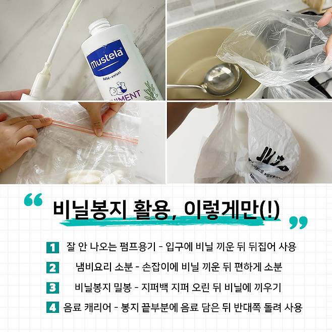 알려드린 꿀팁을 활용해 조금 더 편하고 알뜰하게 살림해보자구요~ 물론 비닐봉지 사용은 최대한 자제하는 거.. RGRG? ♥