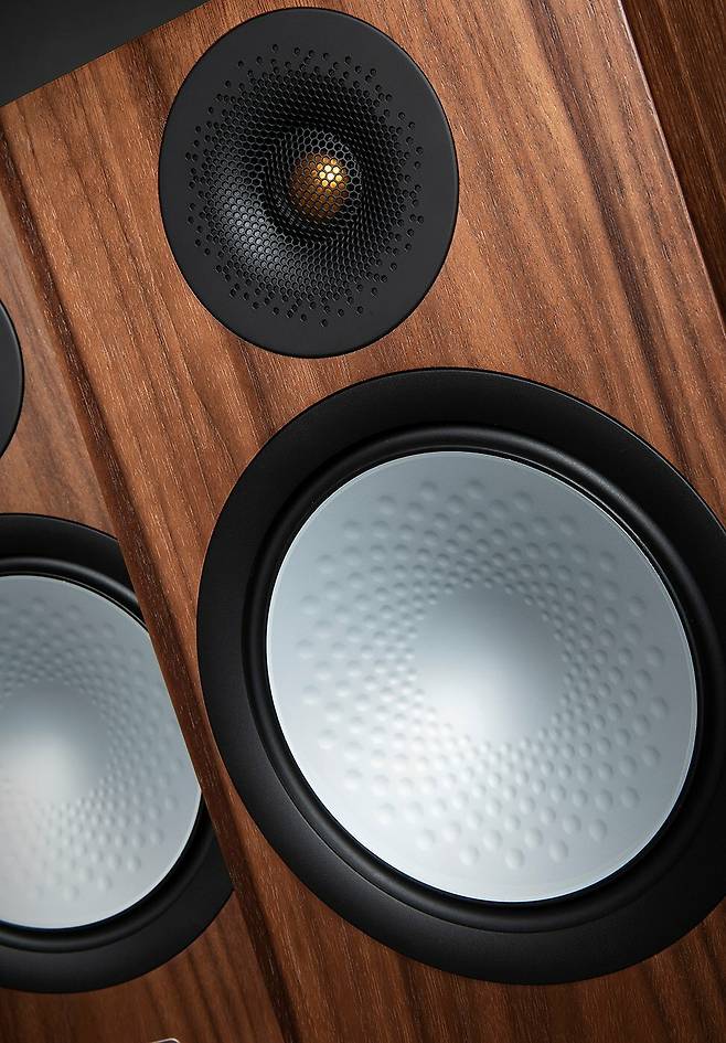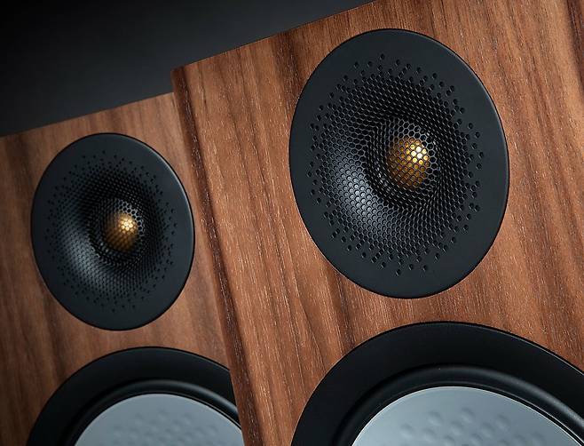 대형 우퍼에서 시선을 올리면 또 하나의 매력적인 유닛이 기다리고 있는데, 정교한 웨이브가이드 속에 은은히 비치는 금색 트위터가 확실한 존재감을 보여준다. 이 멋진 웨이브가이드 역시 UD(Uniform Dispersion) 웨이브가이드 Ⅱ라는 기술이다. 감도 상승 및 왜곡 감소의 특별한 장기를 가지고 있는 기술인데, 모니터 오디오 특유의 깔끔한 고음이 여기서 시작된다 해도 과언이 아니다. 트위터에도 C-CAM 기술이 정교하게 녹아 있고, 사양은 일반적인 1인치 크기이다.
