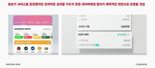 하지만 이 정도로는 쿠팡을 추월하기엔 한계가 있습니다. 모든 영역을 내재화한 쿠팡에 비해, 네이버의 구조는 분산되어 있어 운영 효율에서 차이가 날 수밖에 없기 때문입니다. 네이버 커머스의 핵심 강점은 낮은 수수료를 통해 다양한 셀러와 경쟁력 있는 가격을 확보하는 데 있었는데요. 물류 서비스 강화 과정에서 셀러에게 비용 부담이 늘어난다면 이 장점은 희석될 거고, 오히려 쿠팡과의 격차가 더 커질지도 모릅니다.