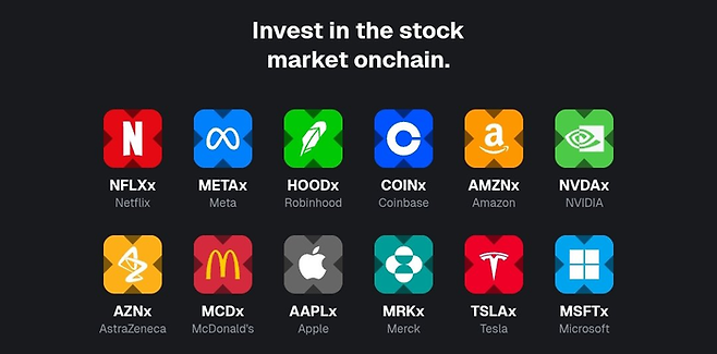 엑스스톡은 테슬라(TSLAx), 엔비디아(NVDAx), 애플(AAPLx), 스트레티지(MSTRx) 등 미국 주식과 인베스코 QQQ 트러스트(QQQx), SPDR S&P500 트러스트(SPYx) 등 상장지수펀드(ETF)까지 60개 이상의 증권을 토큰화하고 있다. 바이비트, 크라켄, 비트겟, 게이트 등의 가상자산거래소에 상장됐으며 탈중앙화거래소(DEX) 등에서도 거래가 가능하다.