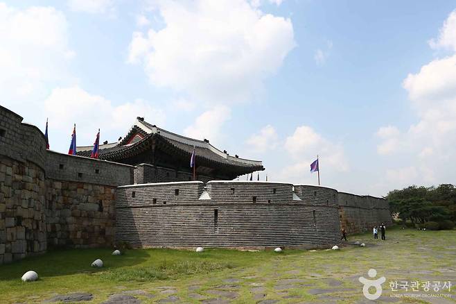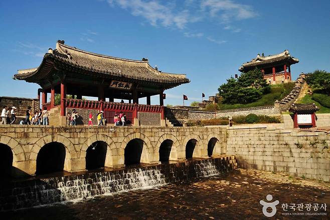 정조대왕의 효심이 깃든 이 성은 1794년부터 2년 반 동안 축성되어, 지금도 당당하게 도시 한가운데를 감싸고 있다.
