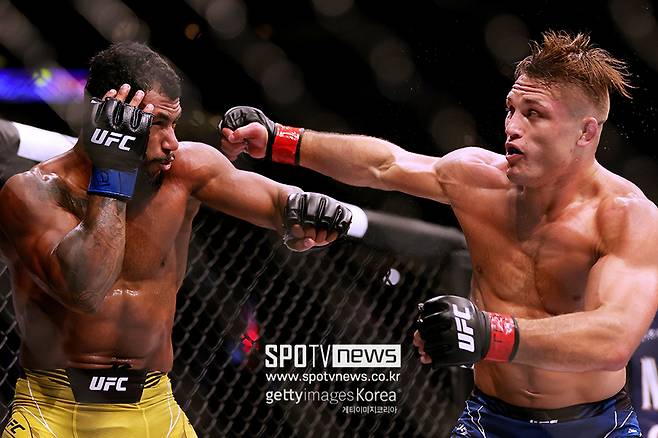 31일(한국 시간) 미국 텍사스 댈러스 아메리칸에어라인센터에서 열린 UFC 277 라이트급 경기에서 하파엘 알베스(31, 브라질)에게 정타를 여러 차례 허용하고도 밀고 들어가 3라운드 1분 30초 KO승을 거뒀다.