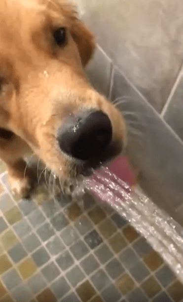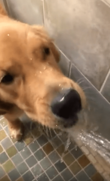 작은 타일 바닥과 하얀 벽, 누가 봐도 욕실로 보이는 공간. 주인이 샤워기를 틀자 고운 물줄기가 아래로 떨어집니다. 그 앞엔 골든 리트리버 한 마리가 조용히 자리를 지키고 있었어요. 입 주위로 떨어지는 물을 그는 마치 차분한 티타임을 즐기듯, 조용히 혀로 핥아먹습니다. 물이 입가에 닿을 때마다 혀끝으로 툭툭 건드리며 받아들이는 모습엔 절제와 여유가 느껴졌죠. 눈빛도 말합니다. “응, 좋아. 이 정도면 괜찮네.”