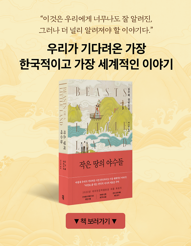 그런데 조만간 <파친코>의 영광이 더 큰 성공으로 한 번 더 재현될 것으로 보입니다. 바로 <작은 땅의 야수들>이라는 누가 봐도 한국의 호랑이를 암시하는 멋진 제목을 가진 한국소설이 현재 미국 문학계에 한바탕 거대한 돌풍을 일으키고 있기 때문입니다.
