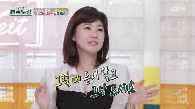 27일 방송된 KBS 예능 '편스토랑'에 출연해 둘째 출산을 앞두고 먹성이 좋아진 이정현에게 폭풍공감하는 모습을 보였습니다. 이정현은 임신 초기 입덧으로 잘 먹지 못해 고생을 많이 했다고 전했는데요.