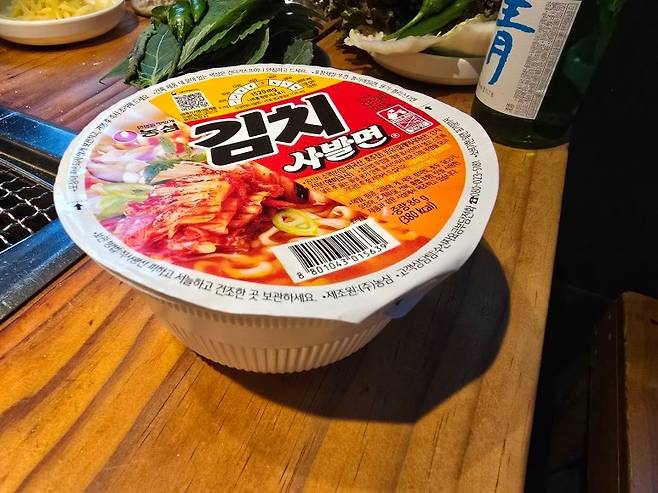 담백한 장어만 먹자니 국물이 땡겨서 옆 편의점에서 구입해온 사발면. 매장 내 정수기에서 뜨거운 물 이용할 수 있으니 편의점에서 물 부은채로 어렵게 운반하지 않아도 된다.