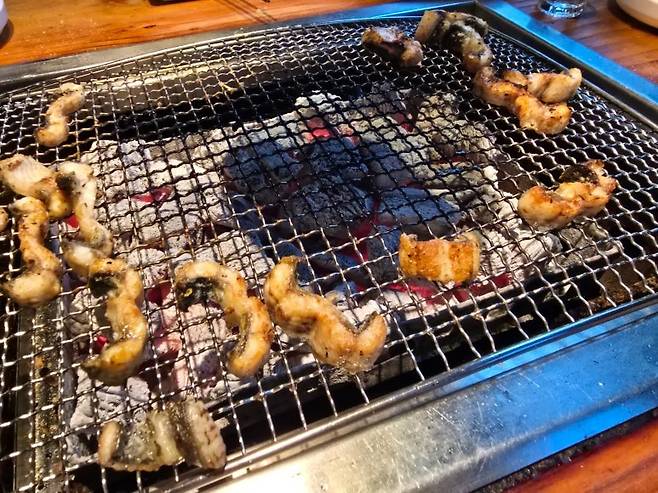 식당과 10분 거리에 위치한 양식장에서 매일 신선한 장어를 공급한다고 하는데, 민물고기 특유의 흙내와 비린내가 거의 없다. 육질이 담백하고 쫄깃하니 맛이 좋았다. 기름져서 쉬이 물리는 장어를 무한리필되는 야채로 쌈사서 참 많이 먹었다.