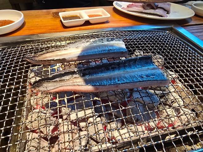 생장어 포장시 1키로 42,000원. 장어는 숯불에 구워야 제맛있데, 집에서 후라이팬에 구워내는 맛을 믿을 수가 없어 매장가로 1키로 더 주문해서 매장에서 죄다 구워서 포장해갔다.