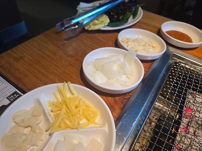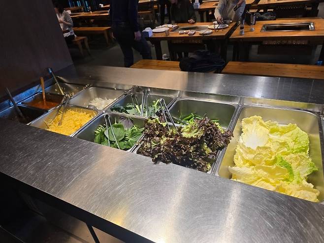 가격이 싼만큼 구워주는 서비스 따위는 없다. 그리고 기본 야채와 소스외에 일체의 반찬이 제공되지 않는다. 그렇다고 싼게 비지떡은 아님. 반찬이 제공되지 않는 대신 먹고 싶은 부식과 반찬류와 심지어 함께 구워먹을 재료들까지 취향껏 준비해 올 수 있기 때문이다. 손님들이 다들 뭔가를 싸들고 입장했던 바로 그 이유이다.