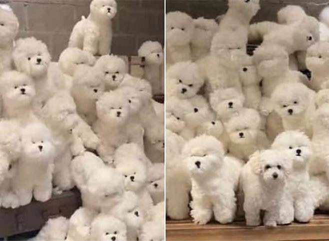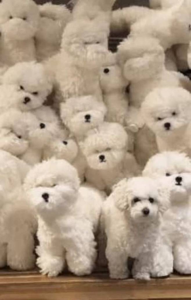 사연은 이렇습니다. SNS상에는 강아지랑 쏙 빼닮은 새하얀 털을 가진 강아지 인형들 사이에 숨어 있는 진짜 강아지 사진이 올라온 것.