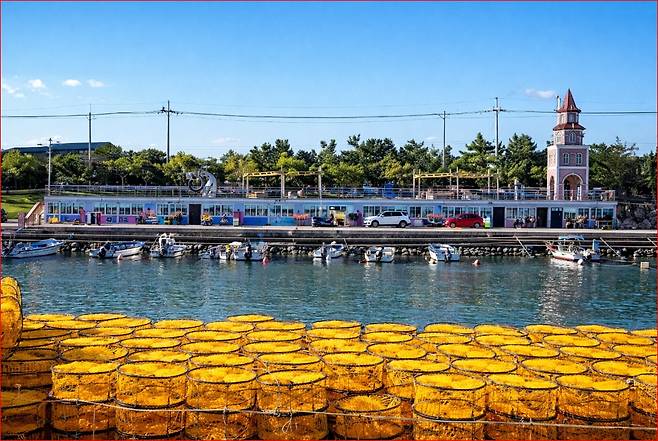 어민의 삶과 예술이 공존하는 공간 이 이국적인 건물의 1층은 사실 지금도 어민들이 어구를 보관하거나 위판장 으로 사용하는 실제 삶의 공간입니다. 셀카 삼매경에 빠져 있다가 문이 벌컥 열리며 그물을 챙기는 어르신과 마주칠 수도 있는데, 이는 장림포구가 박제된 관광지가 아니라 오늘을 살아가는 활기찬 현장임을 보여주는 대목입니다. 세련된 색채 뒤에 숨겨진 우리네 이웃의 치열한 삶의 흔적은, 이곳의 풍경을 더욱 깊이 있게 만들어줍니다.