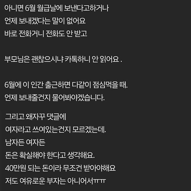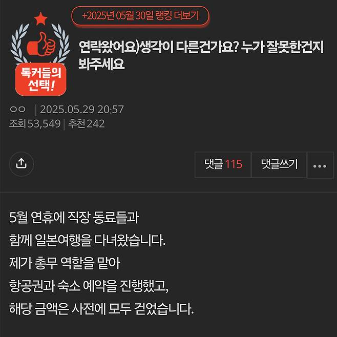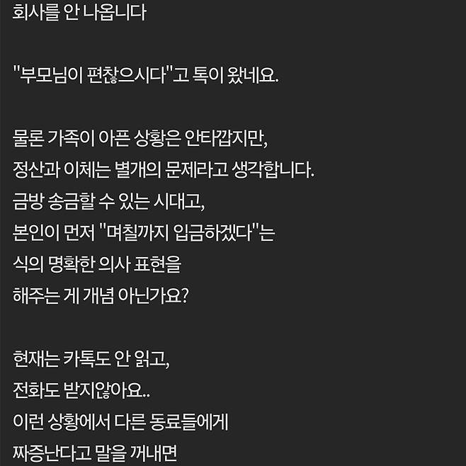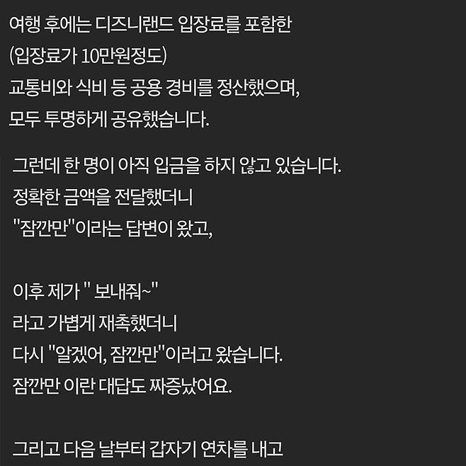 여행경비 정산하는데 다음날 연차내고 안나오는 동료