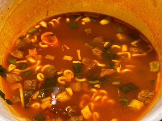 건더기가 푸짐하지만 국물이 생각보다 별로에요. 첫 맛은 얼큰한데 뒷맛이 밍밍하면서도 매운맛이라서 다먹어라이언에겐 맞지않는 맛이에요.
