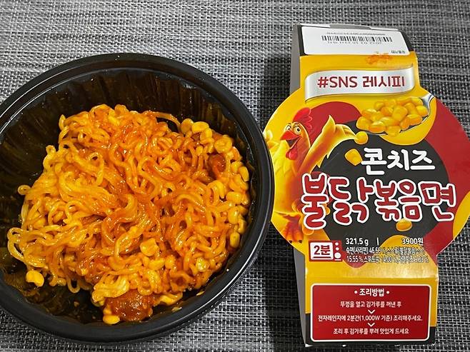 SNS레시피로 불닭볶음면과 콘치즈를 섞은 콘치즈 불닭볶음면을 선택한 것 실패에요. 매운맛을 넘어 먹고나면 얼얼해요.