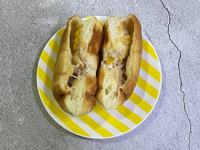 스팸 마요브레드는 스팸과 옥수수콘이 들어있는 편의점 빵인데 한 입 먹고나서 살짝 실망했어요.