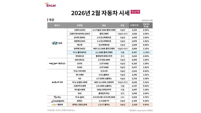중고차 시장에서 1~2월은 통상 거래가 주춤해지는 비수기로 분류된다. 그래서 이 시기를 기다렸다가 매물을 찾는 소비자도 적지 않다. 하지만 2026년 2월 엔카 빅데이터 기준 시세 흐름은 예상과 달랐다.