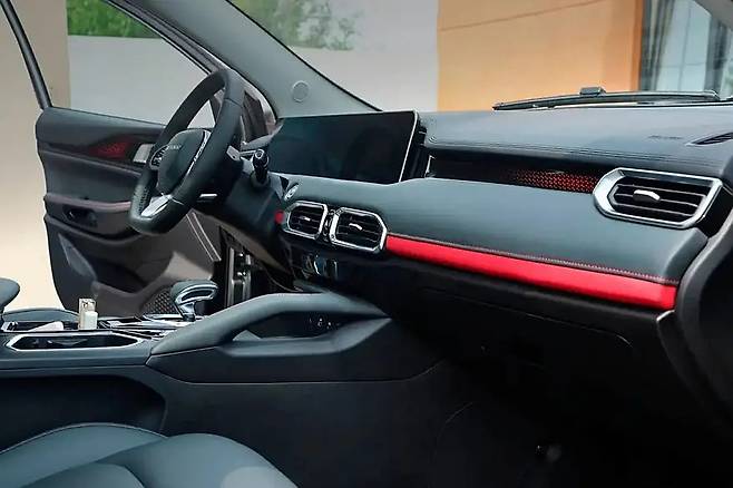 수직형 센터콘솔, 가죽 및 우드 소재 트림, 엠비언트 라이트 등 고급차 수준의 마감과 구성을 자랑한다.