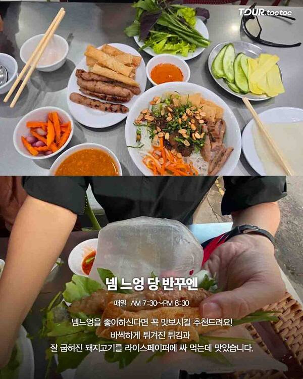 나트랑에서 넴느엉을 처음 접하는 분들에게 적당한 곳입니다. 바삭한 튀김과 고기, 채소를 라이스페이퍼에 싸서 먹는 방식으로 처음엔 낯설 수 있지만, 먹다 보면 계속 손이 가는 조합입니다. 나트랑 맛집으로 제일 권해드리고 싶은 추천 맛집으로 꼽힙니다.