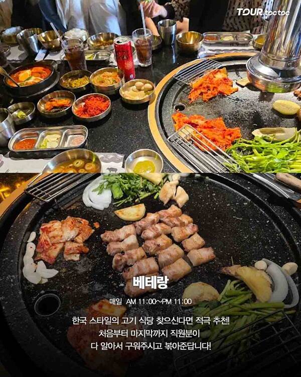 베테랑은 나트랑에서 가장 많이 언급되는 한식 고깃집 중 하나입니다. 직원이 고기를 직접 구워주는 방식이라 언어가 서툴러도 편하게 식사할 수 있고, 밑반찬 구성도 한국인에게 익숙한 편입니다. 나트랑 도착 첫날이나 일정 초반,입맛이 아직 베트남 음식에 적응되지 않았을 때 선택하기 무난한 곳입니다.