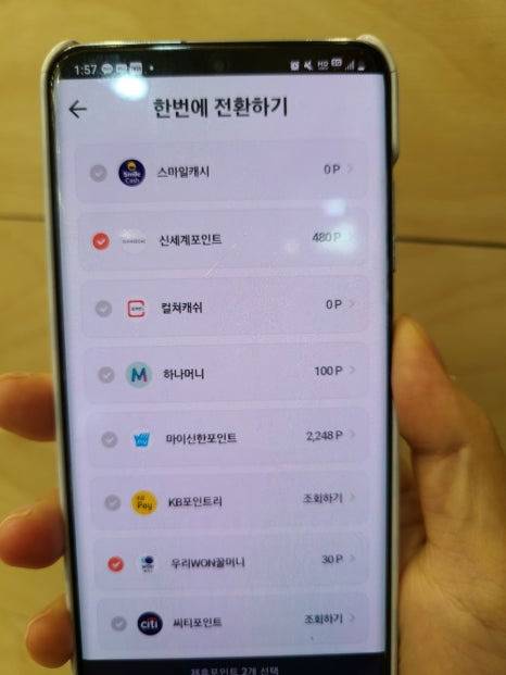 스마일캐시, 신세계포인트, 컬쳐캐쉬, 하나머니, 마이신한포인트, kb포인트리, 우리꿀머니, 씨티포인트, ok캐시백 포인트, 해피캐시,페이코포인트, 북앤라이프캐시, 우체국포인트, 교통페이포인트 중에서 선택해서 바꿀 수가 있습니다. 다행히 2500p가 있어서 그 중 510원만 전환를 했답니다. 어떻게 하다보니 10원까지 같이 하게 되었네요. 헤헤