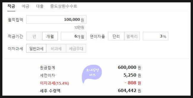 10만원씩 6개월동안 3%의 이율로 적금불입시 받는 세후 이자와 비슷한거 알고 계신가요?